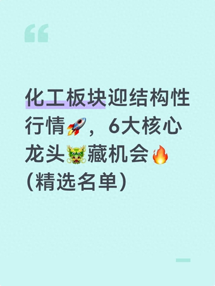 今天为大家详细拆解了化工板块的核心上涨逻辑,也全面梳理了6大龙头企业的核心优势和成长亮点,内容均为干货,无冗余信息,无论新手投资者还是资深股民,看完后都能对化工板块形成清晰认知,避免盲目跟风投资。